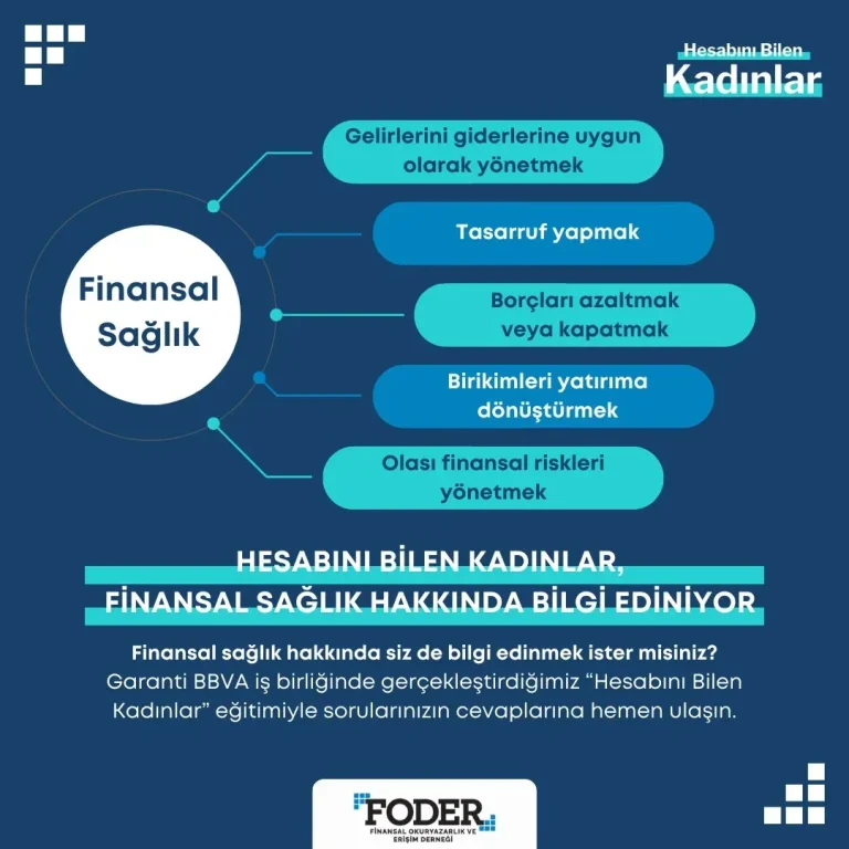 Finansal sağlık, yalnızca birikimlerin büyümesiyle sınırlı olmayan bir kavramdır: gelir akışlarınızı kontrol etmek, borçlarınızı akıllıca yönetmek, acil durumlar için yeterli mali güvenlik oluşturmak ve uzun vadeli hedefler için plan yapmak anlamına gelir. Bu nedenle bütçe yapma ipuçları ve tasarruf ile yatırım temelleri gibi adımlarla günlük yaşamınıza entegre edilmesi gerekir. Finansal sağlığı güçlendirmek için 7 adımlık yaklaşımı bütçe yapma, acil fon kurulumu ve borç yönetimi stratejileriyle uygulayabilirsiniz.